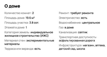 Есть небольшое строение из двух комнат, 1/2 дома (19,6 м²) — можно отремонтировать под себя. и жить во время строительства.