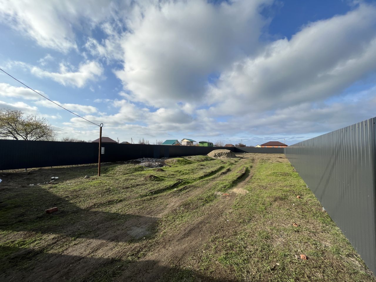 Участок огорожен новым забором с металлопрофиля, заведено электричество, действующая скважина! Газ проходит на соседнем участке, проблем с подключением не будет!