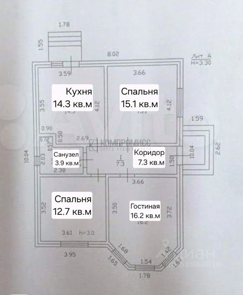 удачная планировка и высокие потолки: 3 просторные комнаты и кухня с выходом на террасу, коридор и санузел, застекленный тамбур;