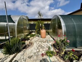 Летняя беседка оборудованная (стол, мангал, лавка, каркасный бассейн).