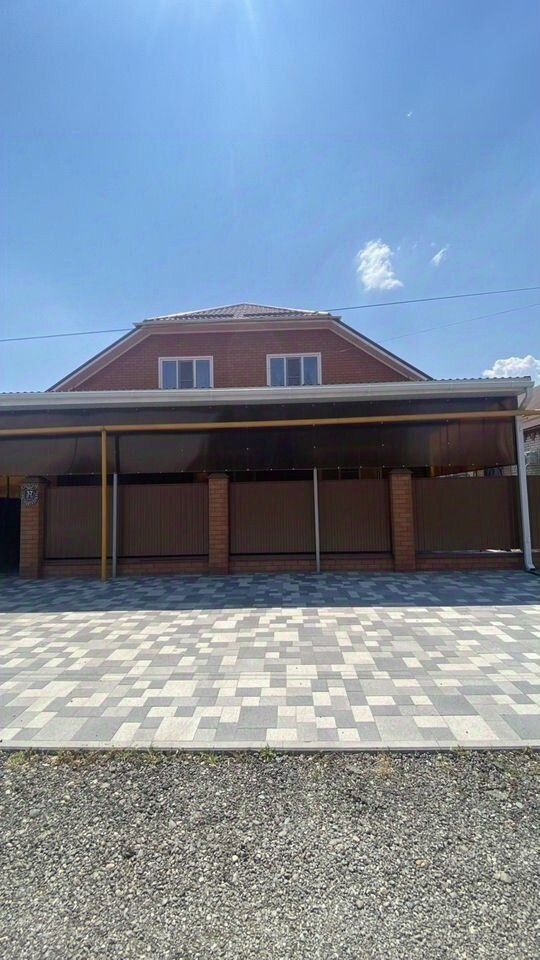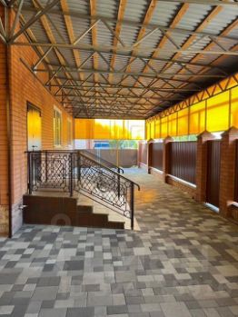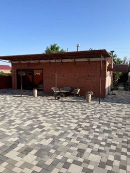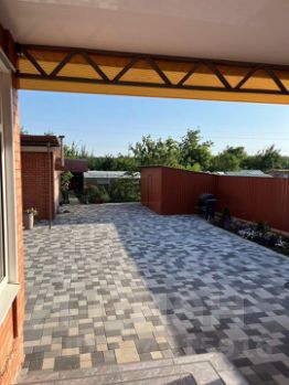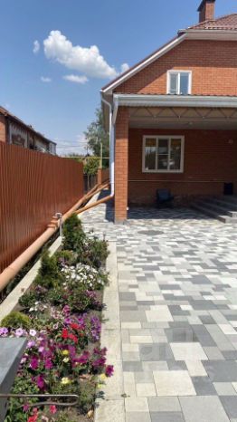 Двор, как и подъезд к дому, вымощен плиткой. Установлена автоматическая система откатных ворот. По всему периметру двора - навес.