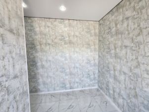 На полу стелется плитка, обои в комнатах в светлых тонах.