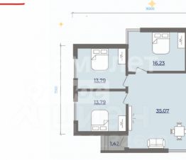 * Три спальни, одна из которых имеет остекление в пол, по площади 15, 16 и 14 кв