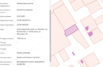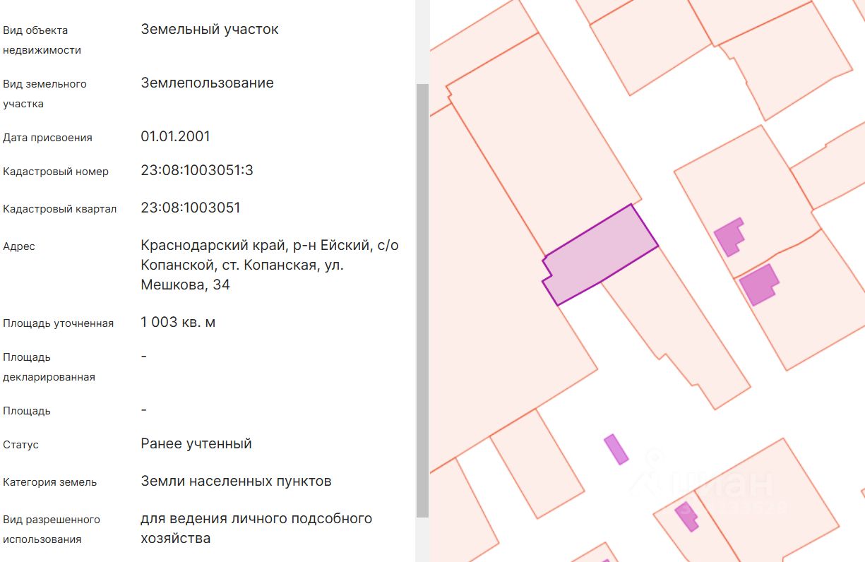 Кадастровый участка 23:08:1003051:3. Межевание проведено.