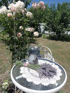 участок ухоженный с ландшафтным дизайном, много сортовых цветов( розы, пионы, лилии, бородатые ирисы, лаванда). А так же плодовые деревья( яблоня, черешня, персик, нектарин,виноград столовых сортов, грецкий орех)
