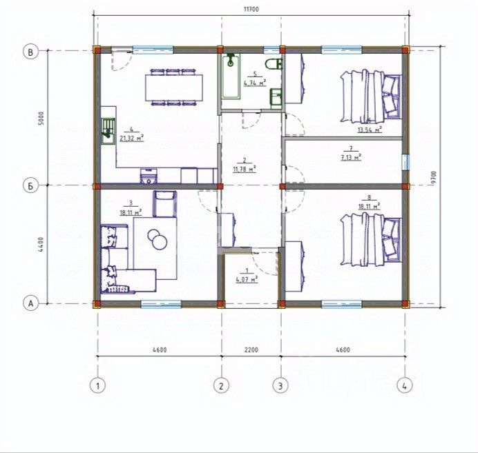 В доме три просторные комнаты, кухня-гостиная, сан.узел .