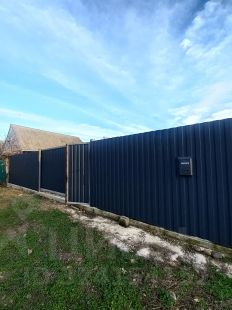 Территория по периметру огорожена металлопрофильным забором с откатными воротами.