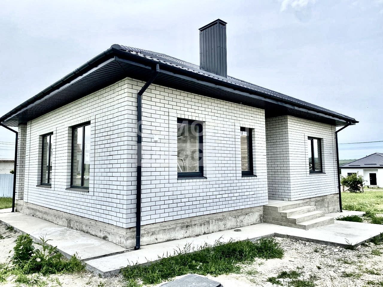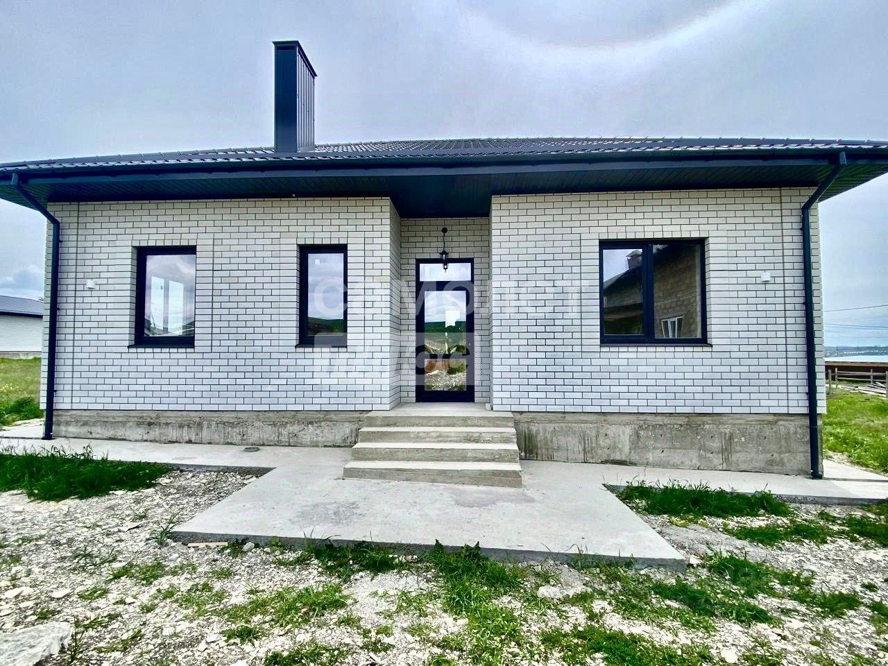 Дом с монолитным перекрытием, высота конька 3 метра, выполнена качественная предчистовая отделка, установлены хорошие дорогие окна (70 профиль), смонтирована архитектурная подсветка фасада, которая включается в темное время суток, фасад дома облицован кирпичом.