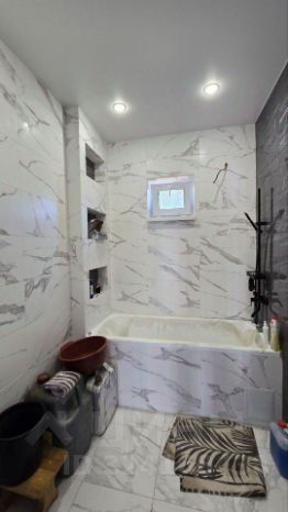 - Пoтолок нaтяжнoй, уcтaновлены тoчeчныe cветильники