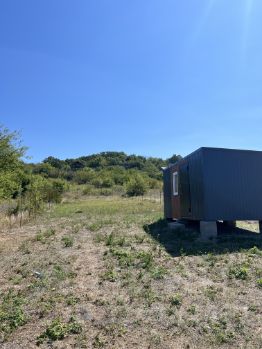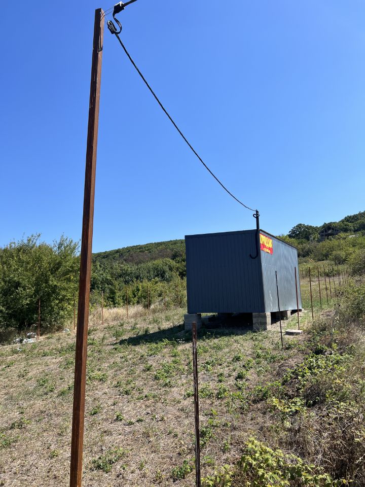Участок огорожен,проведено межевание, подключен свет 15 квт,установлена жилая бытовка новая утепленная,