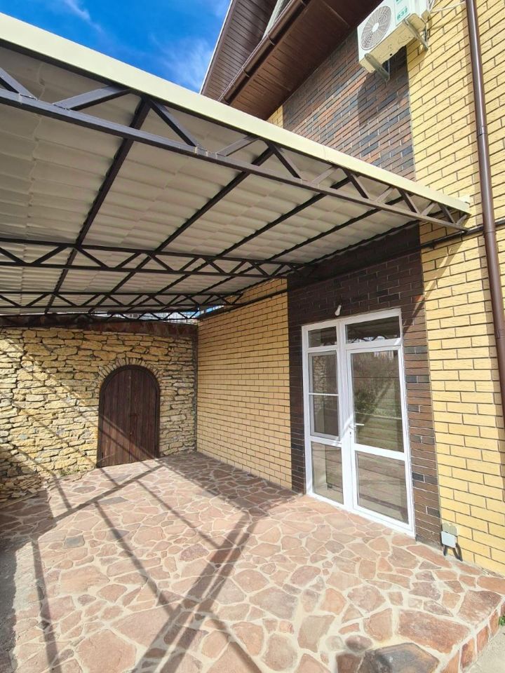 Дом построен: светлый солнцеотражающий керамический поризованный кирпич 200 плотности, сейсмо- монолитный каркас, эко-термоизоляция стен 20 см, толщина наружных стен 45 см, перекрытия монолитные толщиной 20 см, высота потолков 3 м, крыша солнцеотражающая металлочерепица.