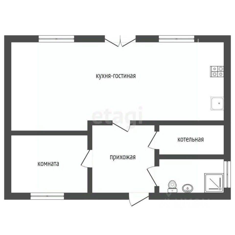 На первом этаже вас ждет просторная кухня-гостиная — идеальное место для семейных ужинов и встреч с друзьями. Здесь также предусмотрены комната, санузел, котельная.