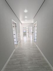 Представлен новый современный дом для круглогодичного комфортного проживания. Объект полностью благоустроен и оснащен автономными системами: водоснабжение обеспечивается собственной скважиной, канализация современным септиком. Качественная отделка и продуманная инженерная инфраструктура создают преимущество для нового владельца. В просторной гостиной-столовой смонтированы теплые полы, обеспечивающие равномерный обогрев, а в остальных комнатах установлены радиаторы. Планировка включает два санузла, что оптимально для семьи. Выход из дома на задний двор организован через крытую террасу, расширяющую жилое пространство в теплое время года. Для автомобиля предусмотрено забетонированное парковочное место с подводом воды, также вывод воды имеется в зоне заднего двора, что удобно для хозяйственных нужд. По периметру дома выполнены розетки для подключения уличного оборудования. Подъезд к дому осуществляется по качественной дороге от асфальтированной магистрали, в шаговой доступности расположена остановка общественного транспорта. Объект соответствует критериям семейной ипотеки, что делает его приобретение выгодной инвестицией в будущее.