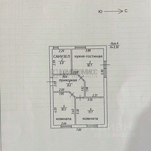 Площадь дома по выписке 58,6 м2 (размер дома по фундаменту - 7х10 м)