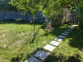Участок огорожен по всему периметру, растут плодовые деревья.