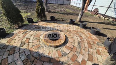 Ухоженный двор полностью забетонирован и украшен туями, многолетними цветами и плодовыми деревьями. Скважина 12 метров обеспечит полив .