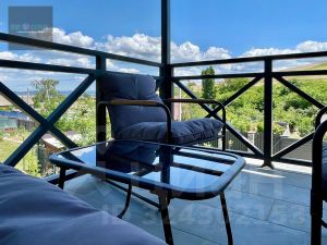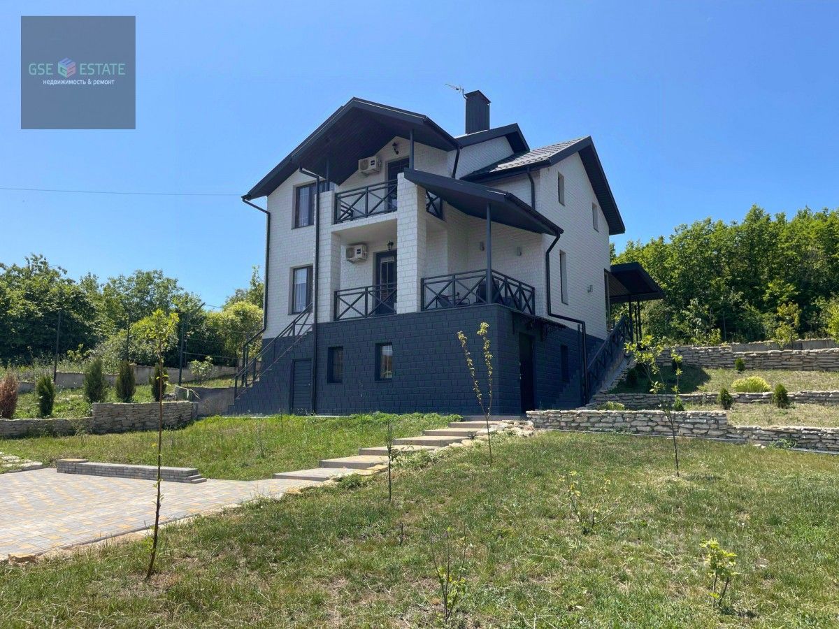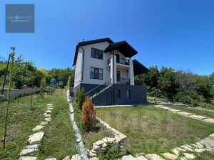 Дом очень красивый, построен из пенобетонных блоков, перекрытия бетонные, введен в эксплуатацию в 2019 году, строили для себя, на материалах не экономили. 3 этажа, весь утеплен, фасад облицован крымским кирпичом, две террасы и балкон, с которых открывается шикарный панорамный вид на горы.