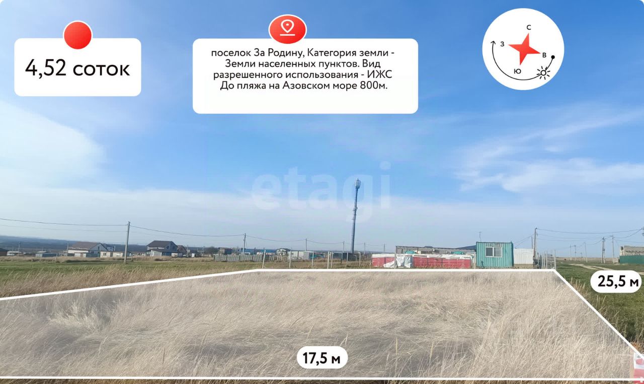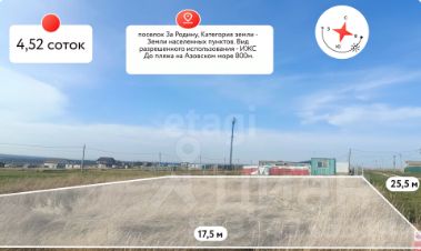 Участок площадью 4,52 сотки расположен в благоустроенном коттеджном поселке "За Родину" в Темрюкском районе.