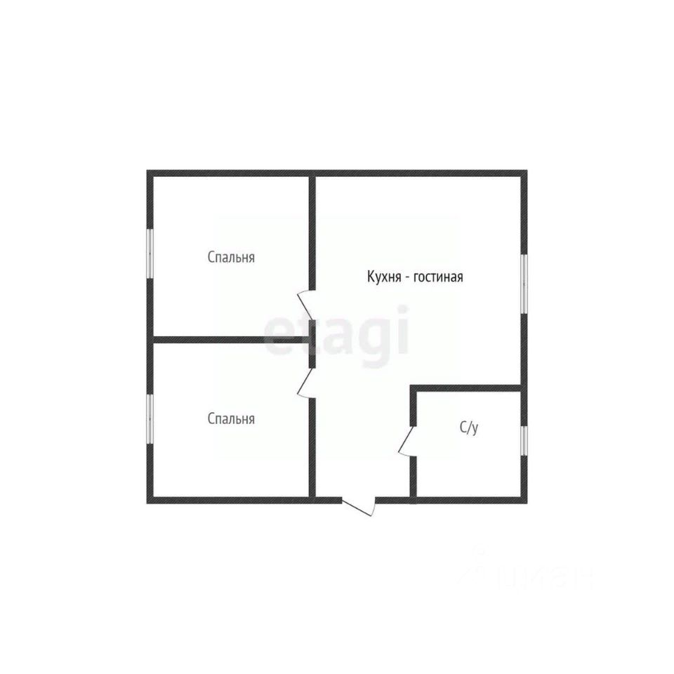 В доме 2 спальни, кухня гостиная и совмещённый санузел.