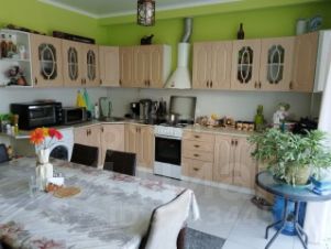 На 1-ом этаже расположены спальня, кухня-гостинная, большой санузел с душевой. Из каждой квартиры отдельный выход на задний дворик. Территория облагорожена, выложена плитка и посажены плодовые деревья. На 2-ом этаже расположены 3 раздельные спальни (в каждой санузел с душем, большая кухня-гостинная). Коммуникации свет, водоснабжение из скважины, канализация септик.