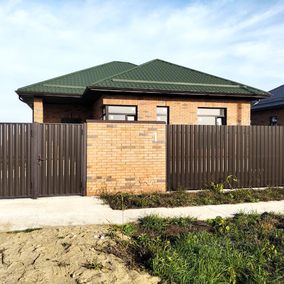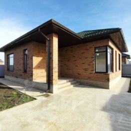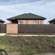 Одноэтажный коттедж общей площадью 90 кв.м комфортной для проживания семьи планировки: холл 10 кв.м, три изолированные комнаты, санузел, котельная, кухня-гостиная 26,5 кв.м с выходом на задний двор.