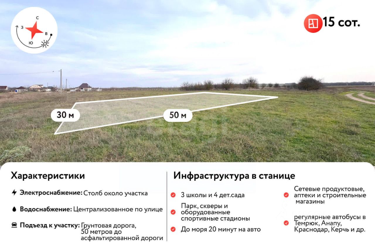 Продается земельный участок в станице Старотитаровской Темрюкского района