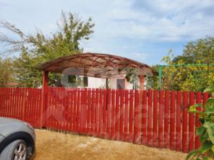 по периметру дома выполнена отмостка. Забетонировано место под парковку автомобиля с навесом из поликарбоната.