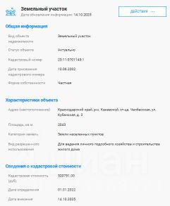 Цена и условия приобретения по запросу. Не упустите шанс стать владельцем прекрасного участка на Кубани!