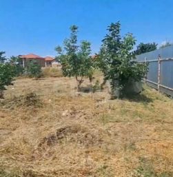 - Участок ровный, чистый, без построек и деревьев, с скошенной травой — можно начинать строительство без вырубки.