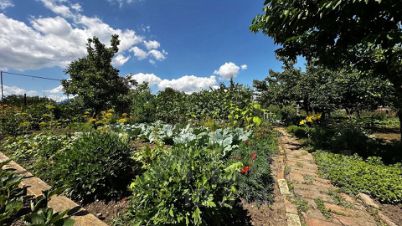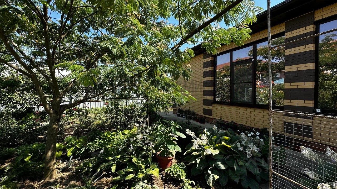 Двор- забетонирован, украшен вечно зелеными туями, беседкой, цветами. Плодоносящий сад радует изобилием плодовых деревьев (6 сортов черешни, две груши, яблоня, две сливы, три персика, 9 кустов винограда), многообразие кустарников, цветов и т.р.