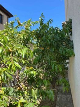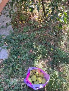 На участке растут плодовые деревья: груша, яблоня, персик, черешня, вишня, инжир.