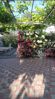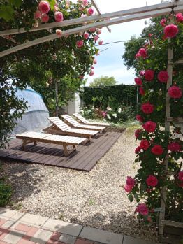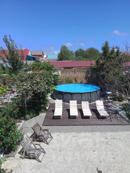 Продается домовладение на земельном участке 10 соток в пос. Пересыпь, Темрюкского р-на, Краснодарского края (60 км от Анапы). Домовладение состоит из двух жилых домов. Первый дом одноэтажное благоустроенное здание, общей площадью 48 кв.м. В доме 4 комнаты, кухня, большой санузел (туалет, ванна, душ). Материал постройки саман, снаружи дом обложен кирпичом. Дом сухой и тёплый. Второй дом двухэтажное благоустроенное отапливаемое здание (фундамент предусмотрен для строительства трехэтажного здания, есть возможность надстройки третьего этажа), общей площадью 214 кв.м. Материал постройки газосиликатный блок. Дом полностью оборудован и подходит для круглогодичного проживания. В доме 10 меблированных комнат со всеми удобствами, прачечная, котельная. Удобно сдавать по договору найма круглый год. На участке также расположены: времянка, глубокий, холодный погреб, подсобные помещения для хранения различного инвентаря, летняя крытая кухня (10 кв.м), обеденная зона под навесом (18 кв.м), детская площадка, зона отдыха (шезлонги, скамейки), зона барбекю под навесом (30 кв.м.).Территория очень уютная, ухоженная, с хорошим зональным распределением, много зелени и цветов, фруктово-ягодные деревья и кустарники. Ночью территория освещается в автоматическом режиме, с использованием энергосберегающих технологий. Имеется городской телефон, проведен оптоволоконный интернет, подключен Wi-Fi, видеонаблюдение. Имеется аварийный электрогенератор 3,5 кВт. Дома имеют отдельные входы. Домовладение имеет прекрасное месторасположение, находится в самом центре курортного поселка. Улица, на которой находится дом, ведет на центральный, широкий пещанно-ракушечный пляж, от дома до пляжа - 150 метров. Кроме того, вся инфраструктура посёлка находится рядом с домом магазины, рынок, торговые ряды, пиццерия, почта, аптека, банкомат, кафе и столовые. Остановки общественного транспорта.