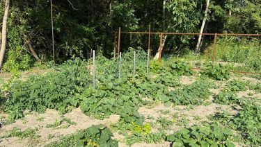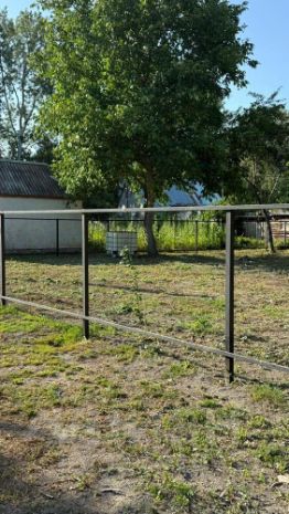 На земельном участке установлен каркас для забора, земля очень плодородная, весенний в период активно идет рыбалка