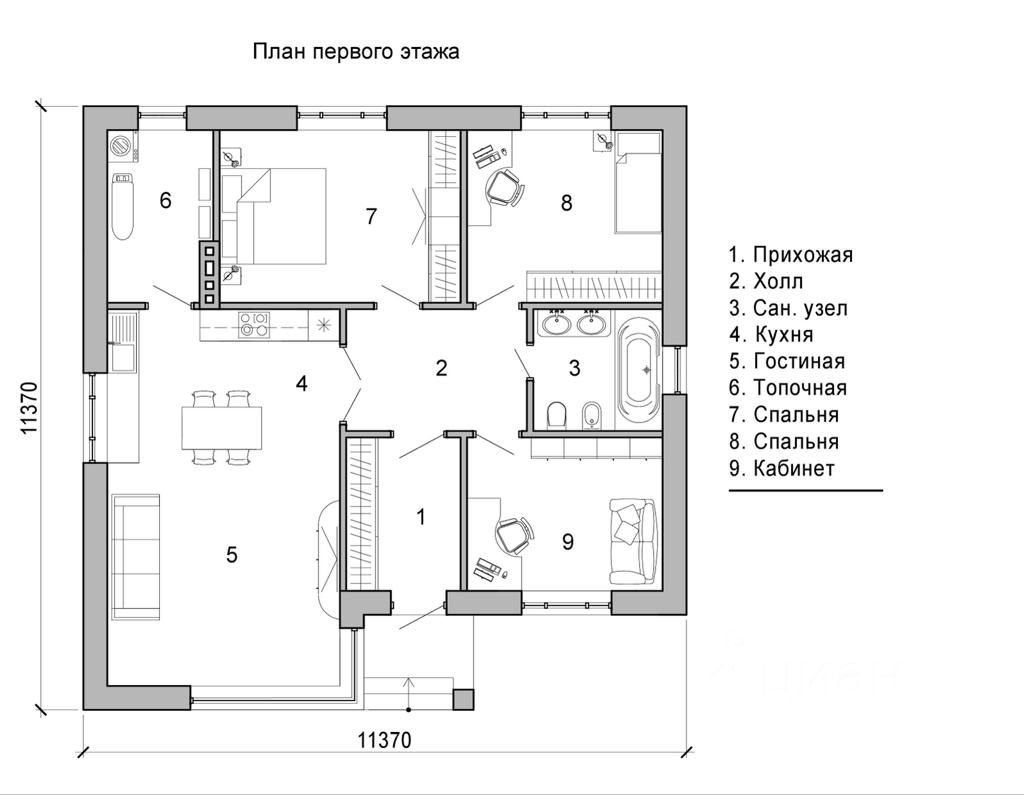 В доме три уютные спальни, просторная кухня-гостиная, где с удовольствием будет собираться вся семья, санузел и удобная котельная-кладовая.