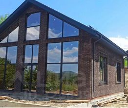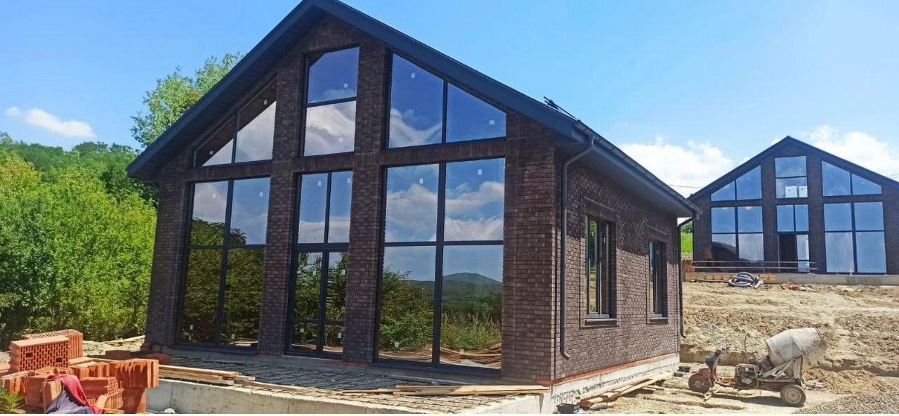 Дом внешне облицован клинкерным кирпичом темного цвета, поэтому идеально вписался в пейзаж!