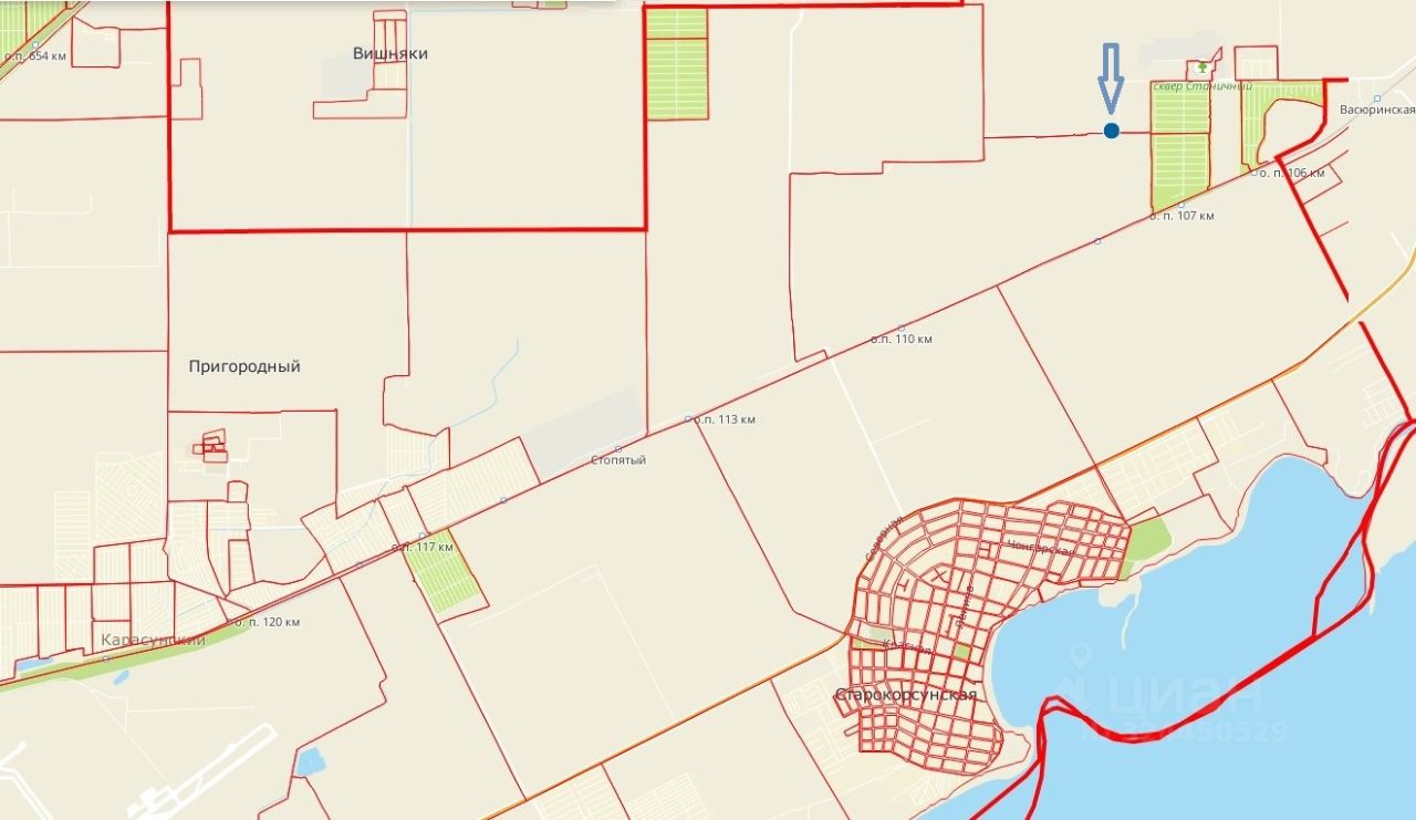 В продаже земельный участок 2 ГА в Восточной части города, в районе ст. Старокорсунской.