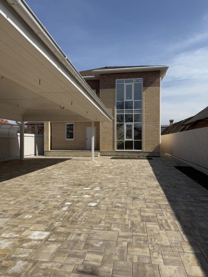 Дом построен в глубине участка, что обеспечивает оптимальное использование территории. На заднем дворе сделан навес с террасой. Также есть место, где можно установить мангал и бассейн. Вместительное отапливаемое уличное помещение (15 м2) оборудованное санузлом и раковиной. Навес для авто, автоматические ворота.