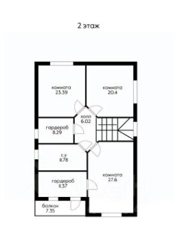 На втором этаже: три спальни , две гардеробные, санузел. Высота потолков 3,1 м