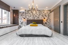 На втором этаже находятся мастер спальня со своей гардеробной, просторным сан узлом с окном и выходом на французский балкон.