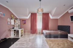 На третьем этаже располагаются еще две спальни- одна детская и другая спальня для гостей, также имеется санузел с ванной.