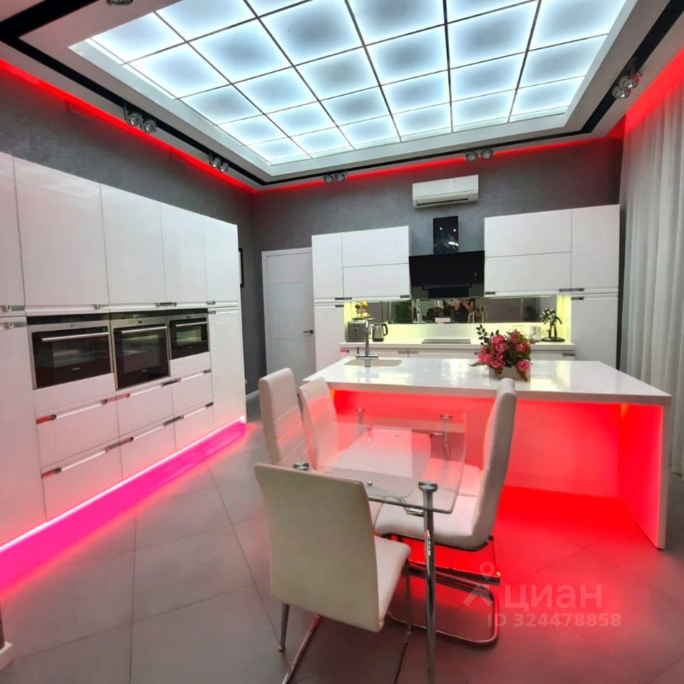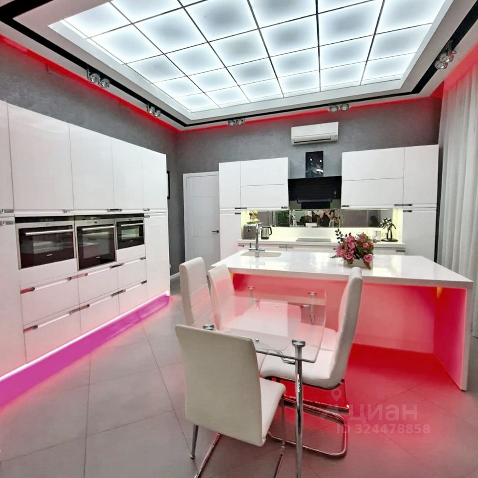 В продаже просторный дом с дизайнерским ремонтом в центре поселка Новознаменский. Дом площадью 680 кв.м., расположен на земельном участке 10 соток включает жилой первый этаж и цокольный этаж с игровыми и вспомогательными помещениями. Особенность первого этажа дома - большое воздушное пространство гостиной дома площадью 95 кв.м., с высотой потолков 4,2 метра и большими панорамными окнами. Гостиная украшена различными элементами дизайна и разделена на функциональные зоны. Кухня 23 кв.м. отделена от гостиной стеклянными раздвижными перегородками, разделена на три зоны, полностью оборудована бытовой техникой европейских брендов. Жилая зона дома имеет отдельный вход и включает три спальные комнаты по 27 кв.м., мастер-спальню со своей ванной комнатой и гардеробом, кабинет, совмещенный санузел. Высота потолков в жилой зоне 3,2 метра.