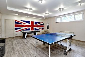 Цокольный этаж - это игровая зона для детей и взрослых, где вся семья может проводить время за различными играми. Для Вас профессиональный бильярд, спортивный зал с тренажерами, комнаты для игры в сквош, настольный хоккей и теннис. Также в цокольном этаже расположены гостевая комната, бытовая и кладовая , санузел, котельная. На участке для Вас и ваших гостей есть зона отдыха и бассейн с подогреваемой водой, в котором вы можете купаться в любое время года.