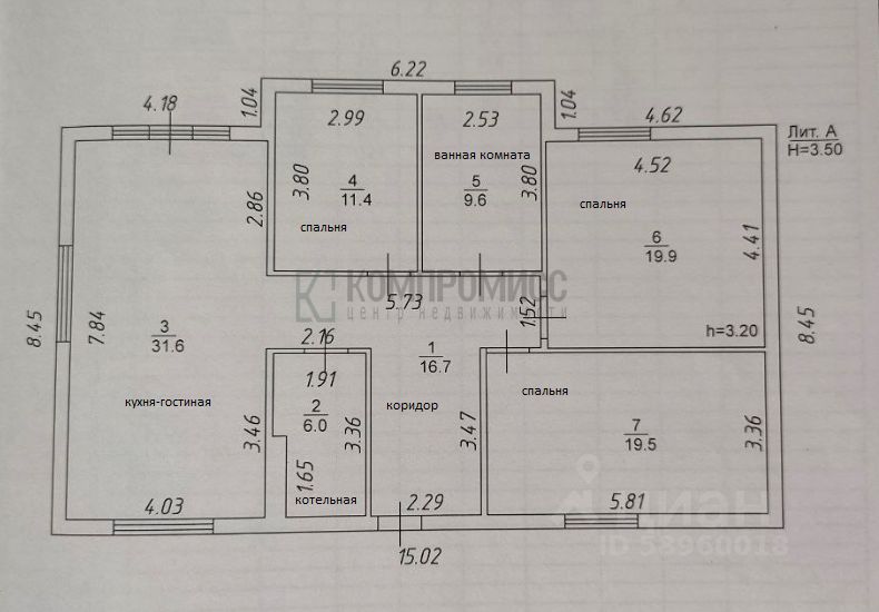 В доме три спальни, кухня-гостиная, просторная ванная комната, коридор и котельная.