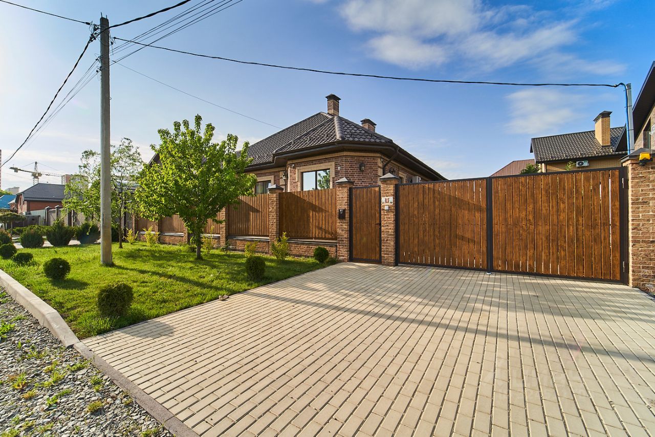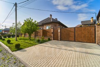 Видеонаблюдение, автоматические ворота (Италия). Территория вокруг дома ухожена- газоны,высокоштамбовые кустарники. Кипарисы по всему внутреннему периметру участка. Двор уложен керамогранитом. Навесы над зоной отдыха из поликарбоната.