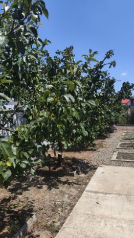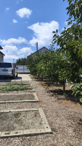 Участок ровный,огорожен по периметру, двор забетонирован. Большой навес под несколько авто, забор с откатными воротами и калиткой. Во дворе хозпомещение , баня на дровах. Хороший плодоносящий сад.