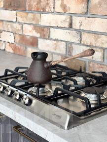 На кухне плитка из старинного кирпича 19 века из Санкт-Петербурга.