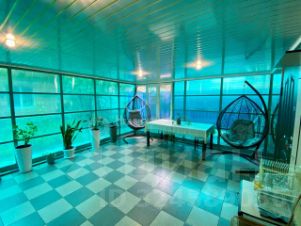 На первом этаже расположены крытая терраса площадью 19,5 кв. м, кухня-гостиная со встроенной техникой площадью 19,6 кв. м, прихожая 16,2 кв. м, два санузла (один раздельный, второй совмещенный), гараж 10,8 кв. м. (переделан в жилую комнату). По всему этажу - теплый пол. Новому собственнику остается мебель и техника. На втором этаже - 3 спальни, общей площадью 39,9 кв. м, холл 17,5 кв. м, застекленная лоджия 9,3 кв. м.