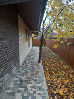 - Во дворе: аккуратная плитка, хозяйственный навес, автоматические роллетные ворота - удобно и безопасно.