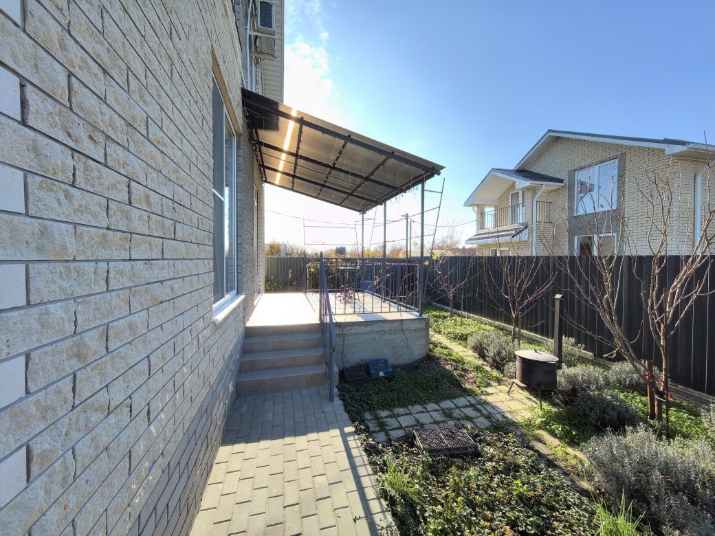 Продам дом 140 кв.м. на 4 сотках земли. В доме 4 комнаты, кухня - гостиная с выходом на террасу 10 кв.м., 2 санузла, навес для отдыха 70 кв.м., кондиционеры в каждой комнате. Отдельное строение для хранения инвентаря и накопительного бака для воды на 500 л с насосом для хорошего напора и подачи. Есть видеонаблюдение по периметру участка. Центральное водоснабжение и газ, септик. Плодоносящий сад. B доме остаeтcя вся мeбeль, техникa (хoлoдильник Hаier, 3 тeлевизopa, пocудомoечная машинкa, cтирaльнaя машинкa, дуxовой шкaф), тeкстиль. В поселке развитая инфраструктура: школа, дет.сад, амбулатopия, pынoк, клуб, сетевые магазины, аптеки.