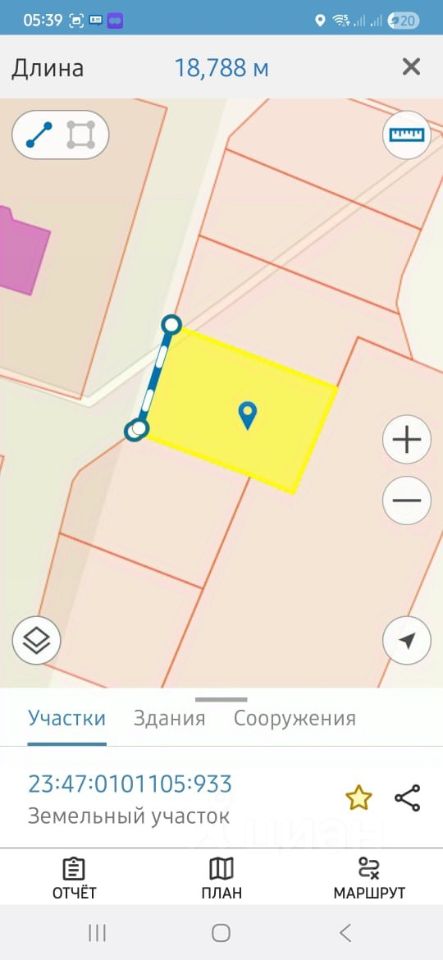 Фасад участка 18,7м, глубина участка 29м.